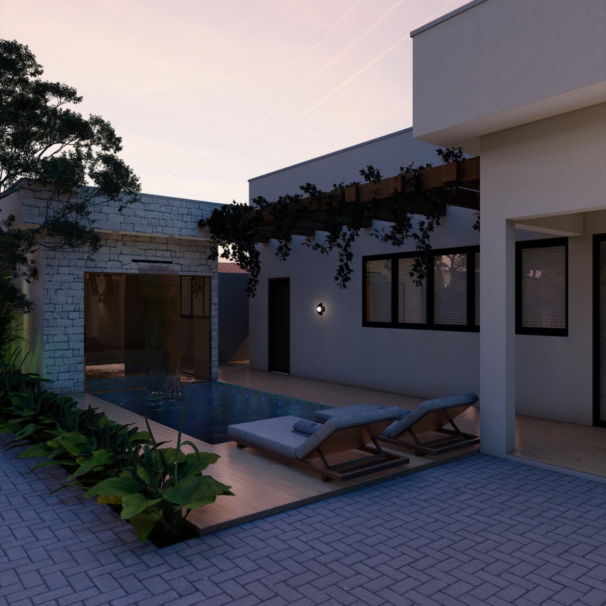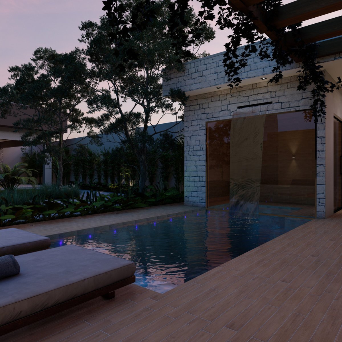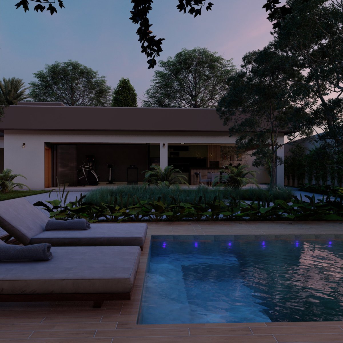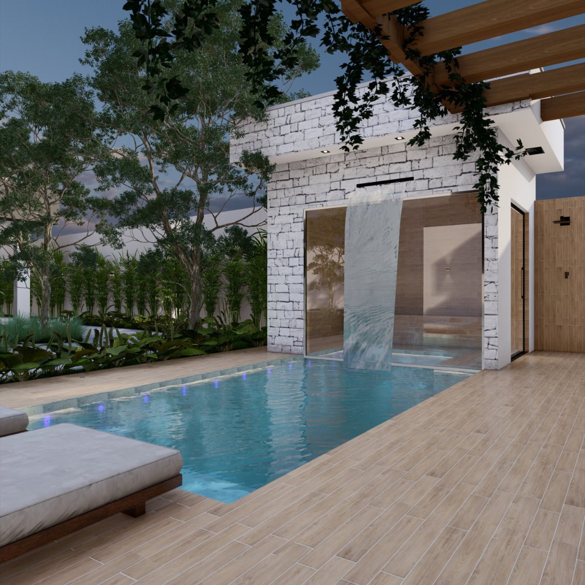 - Piscina com sauna integrada, que transforma o ambiente em um refúgio de relaxamento;